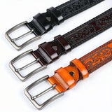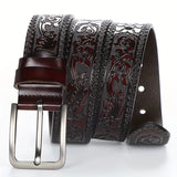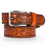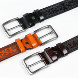 A luxurious leather belt, crafted from premium full-grain leather and adorned with a precision-crafted buckle. A timeless design, elevated by the subtle texture and nuanced details of the leather.