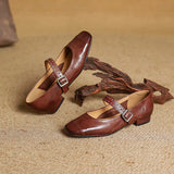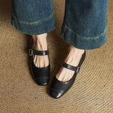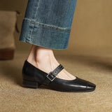 A uniquely studded buckle strap and genuine leather upper refine these classic mary jane pumps, paired with a supportive footbed and low heel for lasting elegance and comfort.