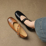 Burnished genuine leather shapes these round-toe flats, accented with a unique buckle strap and cushioned insole for a comfortable, easy-to-style look.
