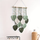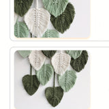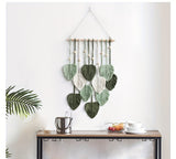 Hand-knitted with care, our macrame wall hanging features intricate green leaves that bring the beauty of the outdoors inside. Its unique design and lush foliage make it a focal point in your home decor.