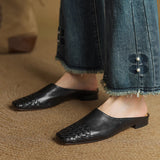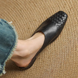 Intricately woven finish and square-toe silhouette define this genuine leather mule, featuring a timeless design that pairs well with your casual and chic looks.