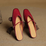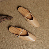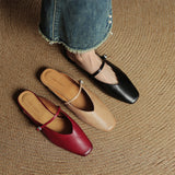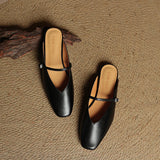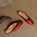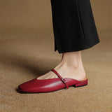 A subtly squared toe and V-cut vamp bring timeless charm to these mules, crafted from richly grained genuine leather with a sleek Mary Jane and slip-on convenience.