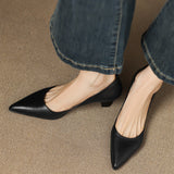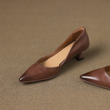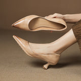Polished genuine leather and burnished edges bring refined elegance to these pointed-toe heels, featuring skin-revealing side curves for a stylish profile with foam-padded comfort.