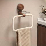 A sleek blend of modern minimalism and natural warmth, this wall-mount towel ring is crafted with a wood-accented base and a smooth rounded frame. Its sturdy, space-saving design keeps towels neatly in place while adding a touch of elegance to any bathroom or vanity space.