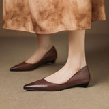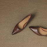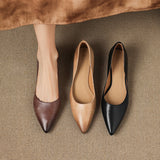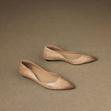 A gently pointed topline shapes the timeless silhouette of these genuine leather flats, crafted with a smooth finish and soft tonal shading for understated elegance. Complete with a cushioned insole and low wedge heel, they offer refined style and lasting comfort from desk to dinner.