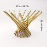 A centerpiece designed to command attention, The Aurelia Spiral Bowl turns simple geometry into sculpture. Golden rods twist upward in a fluid, architectural motion, forming an airy cradle that frames fruit like a gallery display. Equal parts functional and ornamental, it’s a statement that belongs just as easily in a dining room as it does in an art-filled living space.