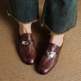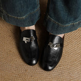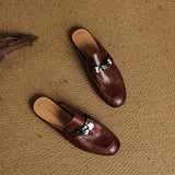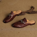 A premium twist-lock buckle hardware elevates the rich profile of these genuine leather mules set on a cushioned footbed and slip-resistant sole.