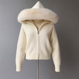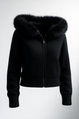 Crafted from a soft, cozy knit blend, the Ellison Faux Trim Hoodie sweater features a plush faux fur–lined hood and cuffs that add both warmth and sophistication. Designed in a flattering cream-white shade, it pairs effortlessly with casual or elevated looks, making it your go-to piece for crisp city strolls or cozy evenings. The relaxed silhouette, ribbed detailing, and premium faux fur trim combine to deliver both comfort and chic style — perfect for the modern woman seeking everyday luxury.