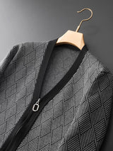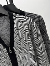 The Ellison Lattice Cardigan refines casual layering through a geometric lens, translating structure into a soft, wearable form. The diamond-patterned knit creates a subtle interplay of depth and texture, while the clean black trim frames the silhouette with quiet precision. Designed to move seamlessly between refined and relaxed settings, it embodies Ellison & Fitz’s pursuit of understated distinction.