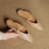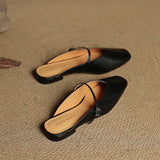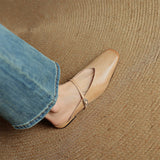 A subtly squared toe and V-cut vamp bring timeless charm to these mules, crafted from richly grained genuine leather with a sleek Mary Jane and slip-on convenience.