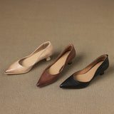 Polished genuine leather and burnished edges bring refined elegance to these pointed-toe heels, featuring skin-revealing side curves for a stylish profile with foam-padded comfort.