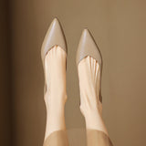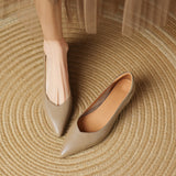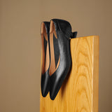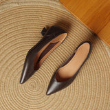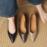 A pointed toe sharpens the elegant profile of these genuine leather slip-ons, supported by a sculpted low heel and a comfortable insole, blending modern elegance with everyday versatility.