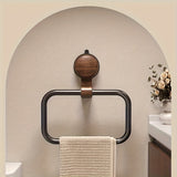 A sleek blend of modern minimalism and natural warmth, this wall-mount towel ring is crafted with a wood-accented base and a smooth rounded frame. Its sturdy, space-saving design keeps towels neatly in place while adding a touch of elegance to any bathroom or vanity space.