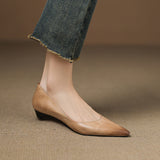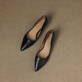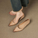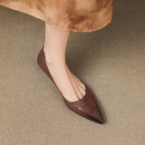A gently pointed topline shapes the timeless silhouette of these genuine leather flats, crafted with a smooth finish and soft tonal shading for understated elegance. Complete with a cushioned insole and low wedge heel, they offer refined style and lasting comfort from desk to dinner.