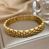 A bold two-tone design elevates this steel link bracelet, crafted with alternating polished silver and gold-tone segments for a refined, modern edge. Built with a sturdy clasp and smooth finish, it delivers durability, comfort, and timeless sophistication.