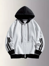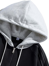 The Ellison Axis Hoodie explores contrast through simplicity. Black and ash-grey panels define the silhouette with quiet precision, while striped sleeves draw on athletic references pared back to their essence. The result is a garment that feels both graphic and restrained designed to move seamlessly across settings.