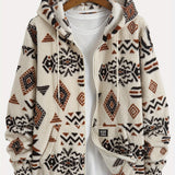 The Ellison Sherpa Hoodie channels a sense of warmth and craft through bold geometric patterning and a soft, tactile surface. Inspired by artisanal textiles and heritage motifs, it translates tradition into a relaxed, contemporary silhouette. Its plush sherpa exterior and clean lines bring together comfort and visual presence, designed for cooler days where texture itself becomes the statement.